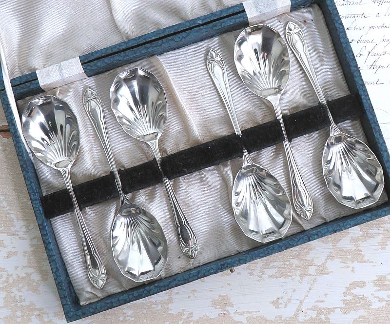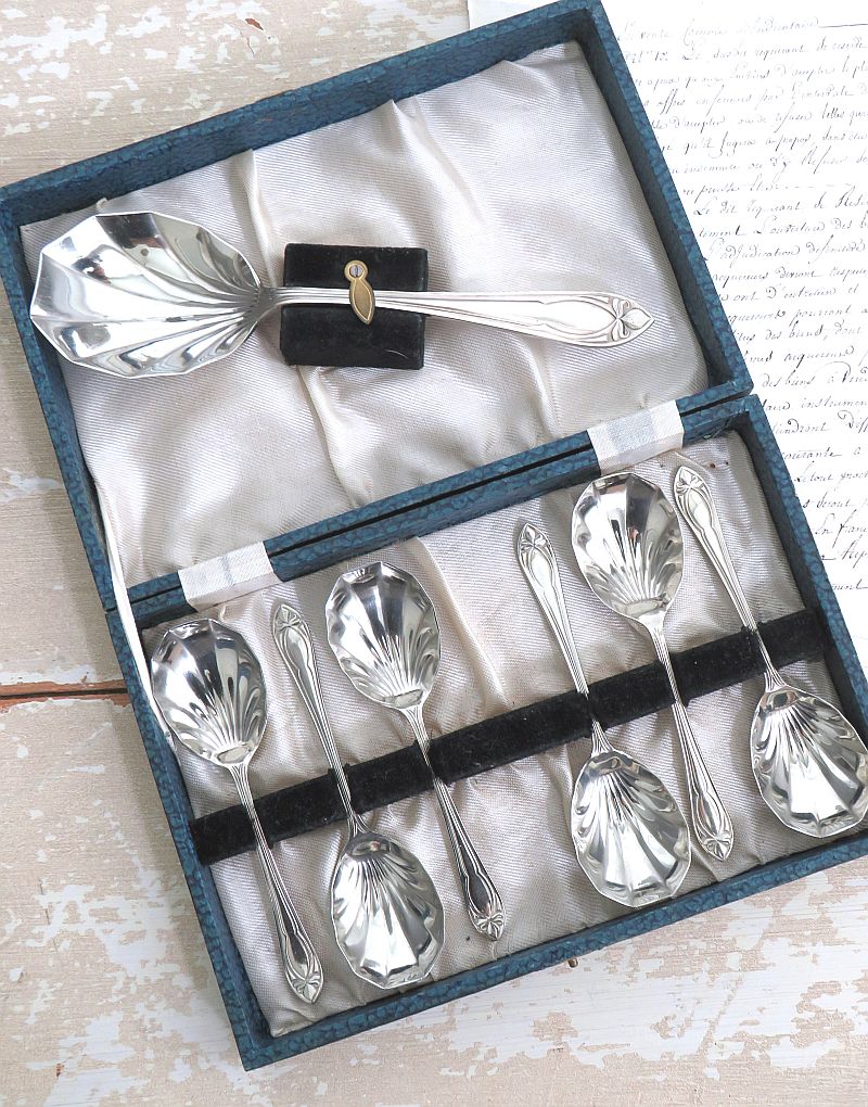 De set bestaat uit 6 kleine lepels en 1 grote opscheplepel.