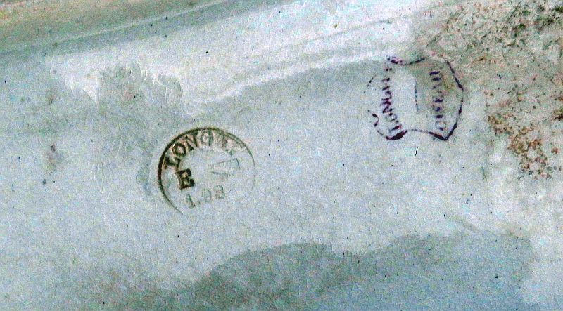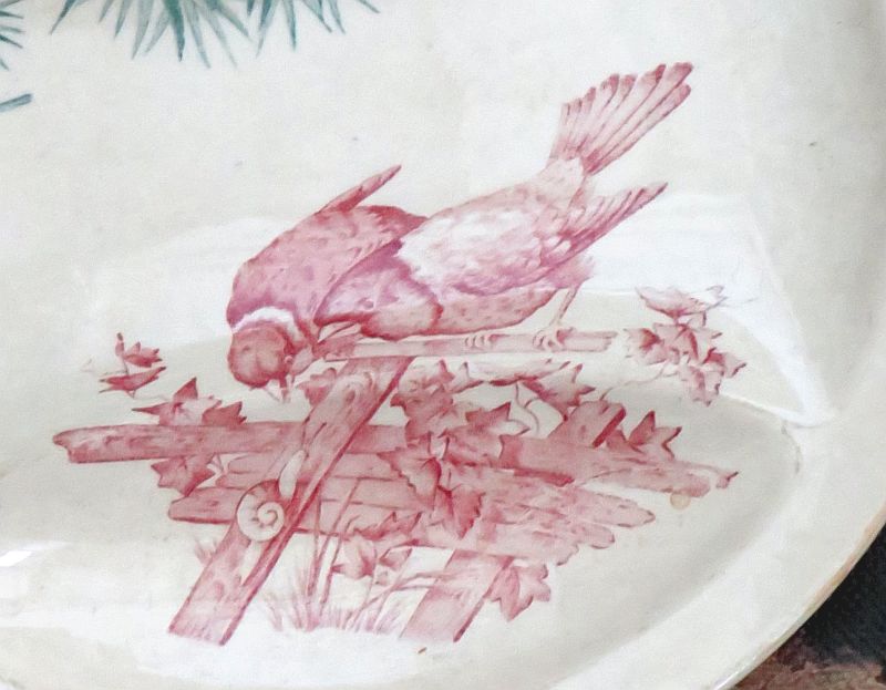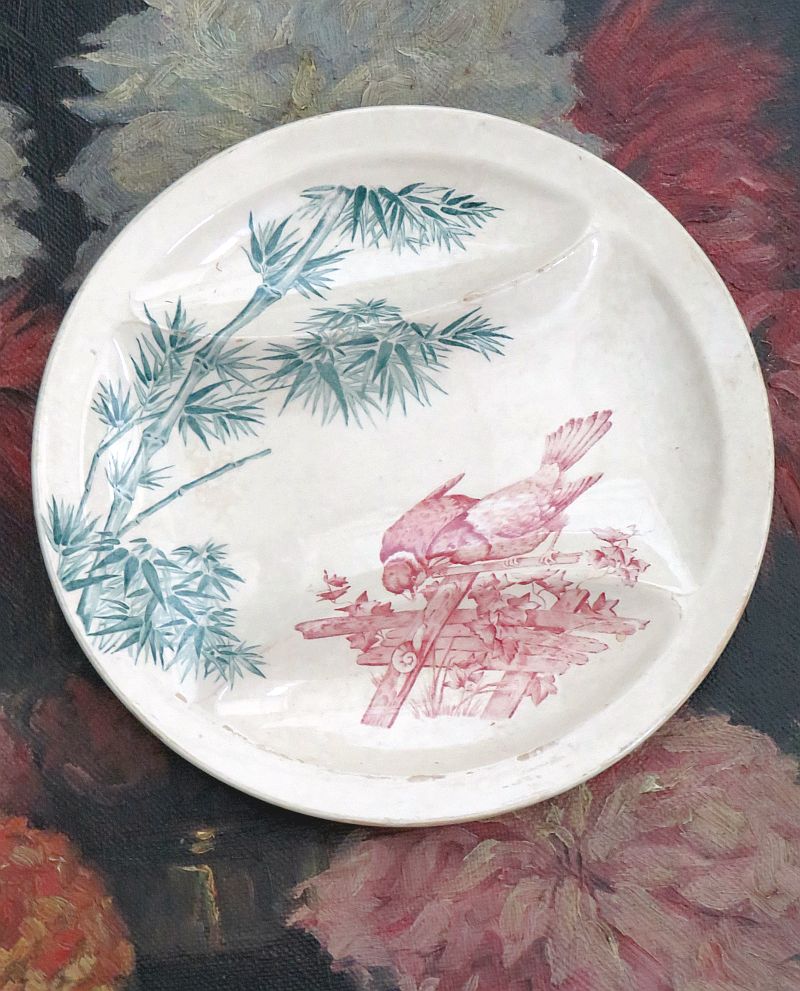 Antiek aspergebord Longwy gedecoreerd met bamboe, 2 vogeltjes en 1 slakje.