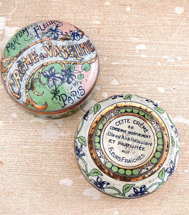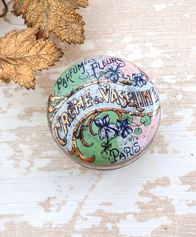 Antiek blikje Crème de Vaseline ” Parfum des Fleurs” PARIS