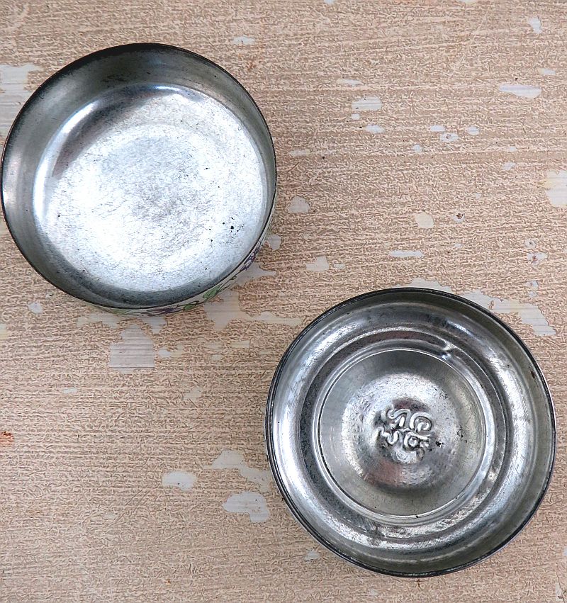 Het blikje is gedecoreerd met blauwe viooltjes.In goede conditie met een paar gebruiks-/ ouderdomssporen.