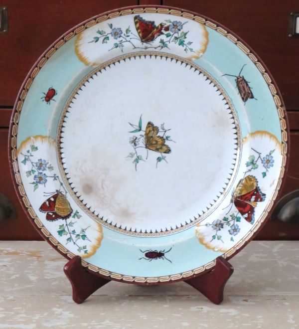 Antiek plat bord Minton “Butterfly” 1862-1900.