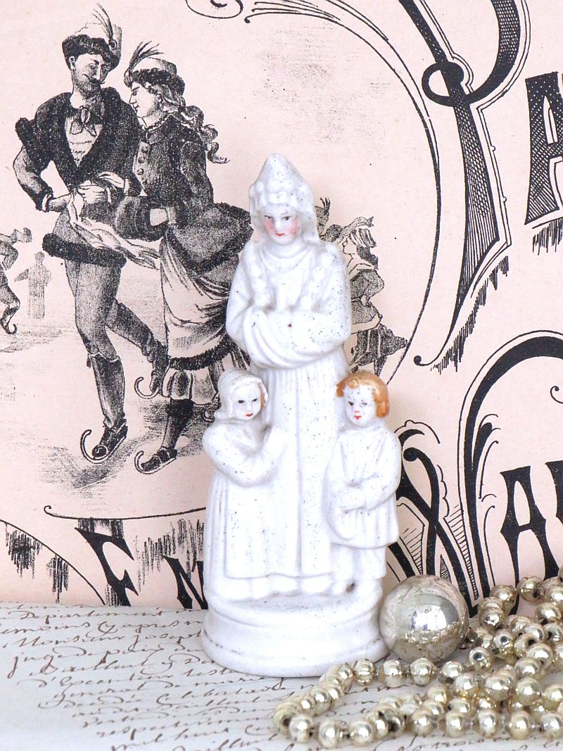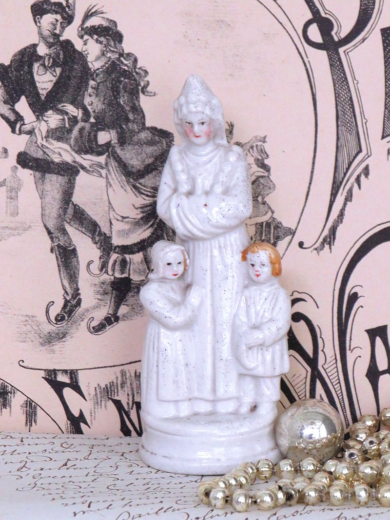 Antiek zwaar Frans porseleinen beeldje “Moeder en kinderen”.