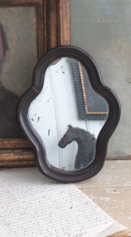 Het oude originele spiegelglas is nog aanwezig en heeft karakteristieke ouderdomsplekjes.
