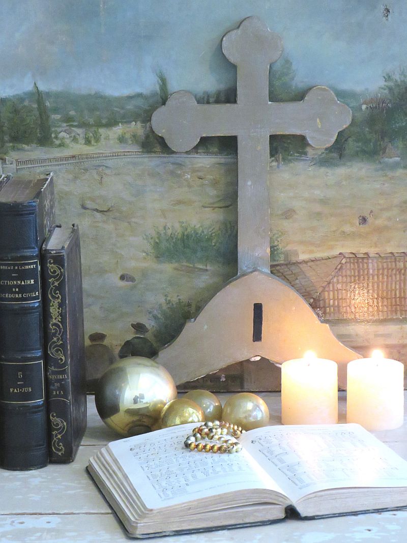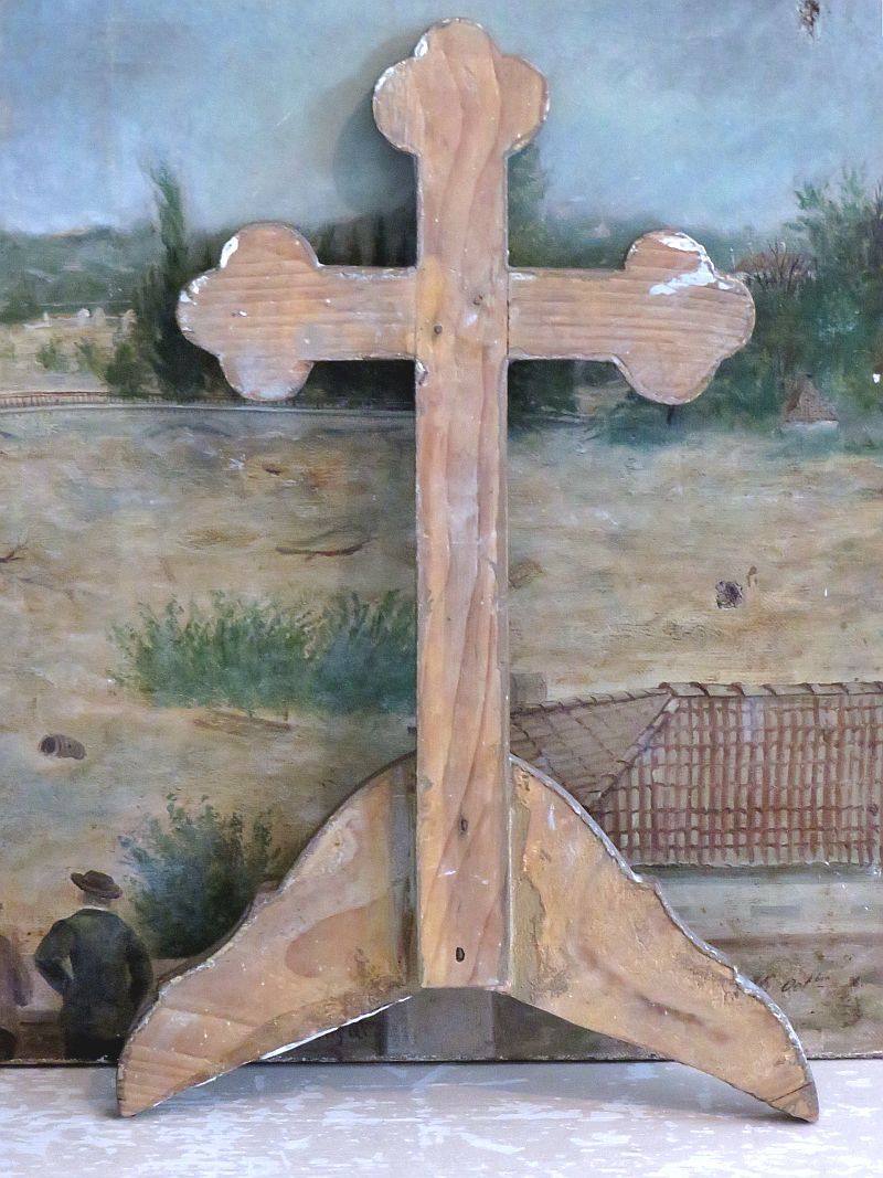 Antiek houten kruis afkomstig van het dak van een kruiswegkapelletje.