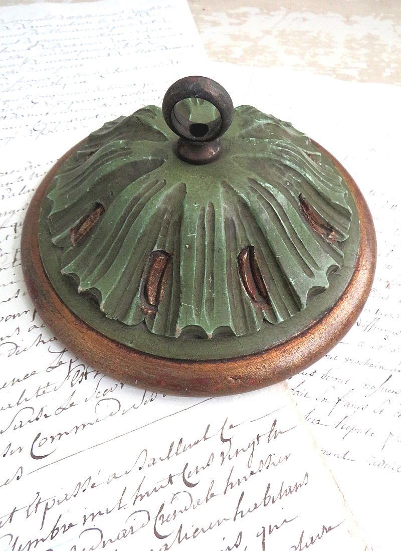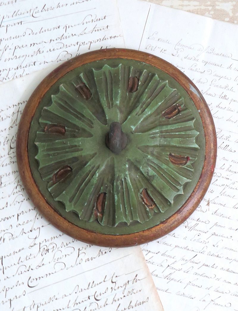 Het hout (groen en goud) heeft een prachtige ouderdomspatine.