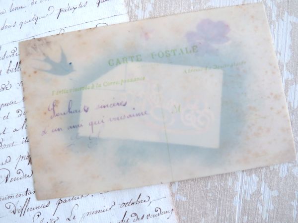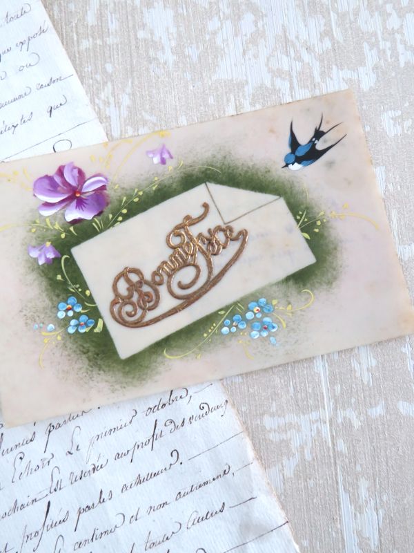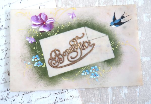 Antieke handbeschilderde Franse celluloid kaart “Bonne Fête”.