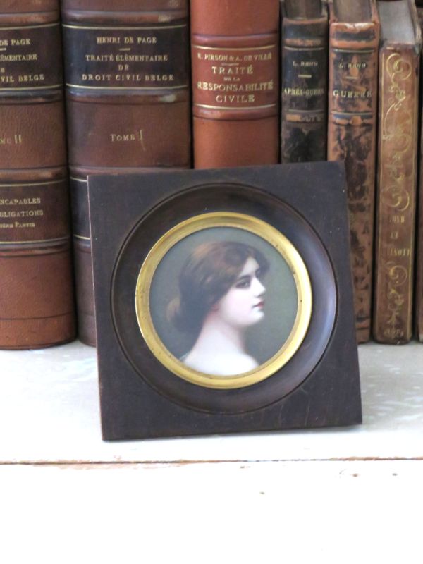 Antieke Franse lijst met daarin een miniatuurportret (prentje), circa 1880/ 1900.