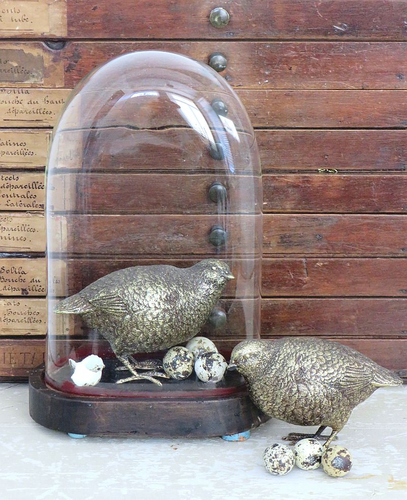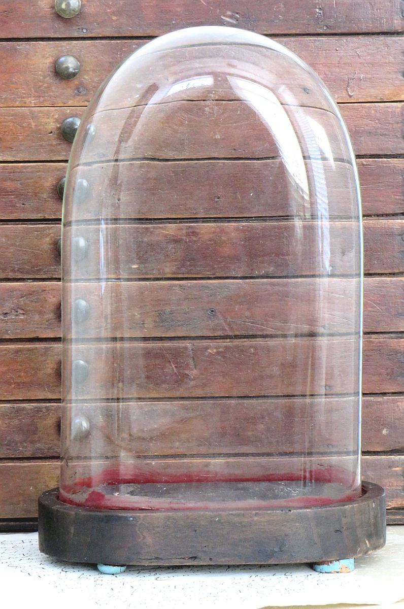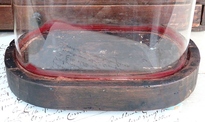 De stolp is in goede conditie. De rand heeft verkleuring van fluweelband ( kan worden verwijderd).