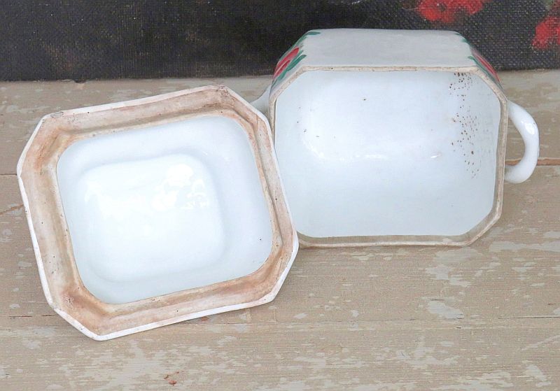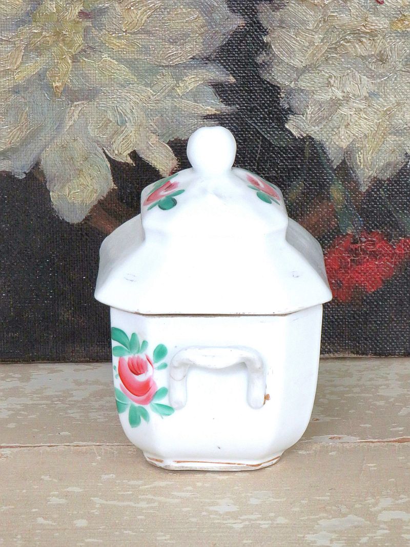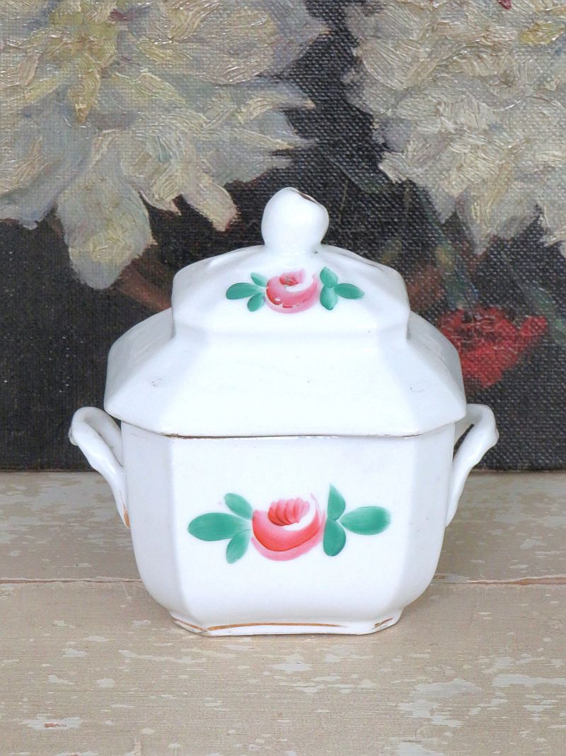 Antieke Franse suikerpot met handbeschilderde roosjes.