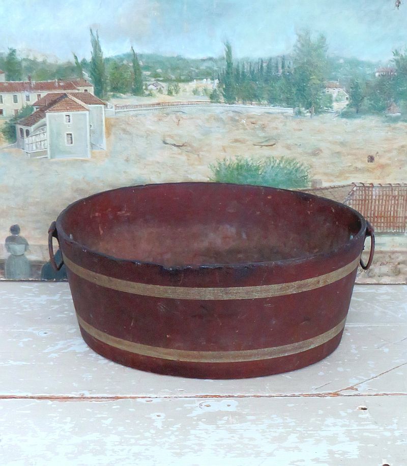 Antieke ovale kuip/ ton van houtpulp (geperst).