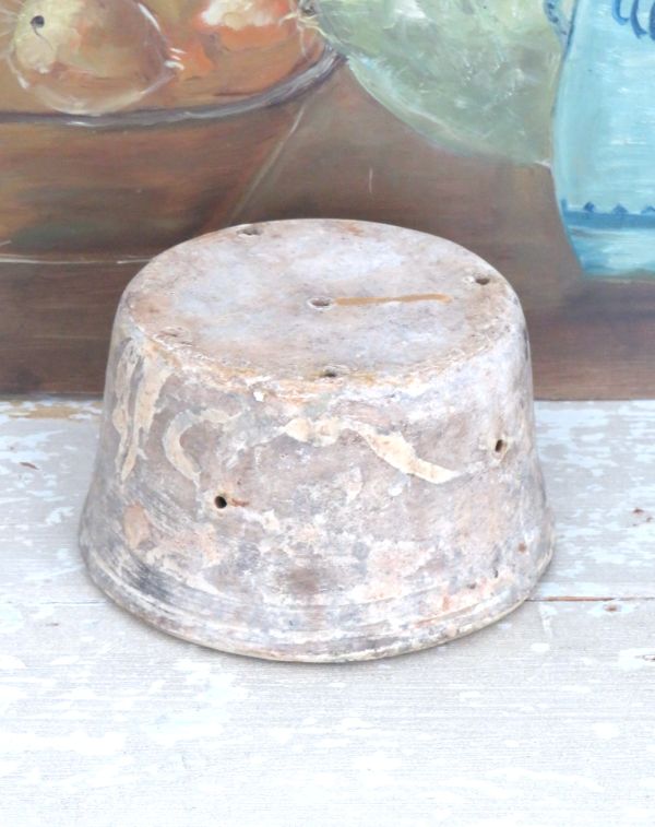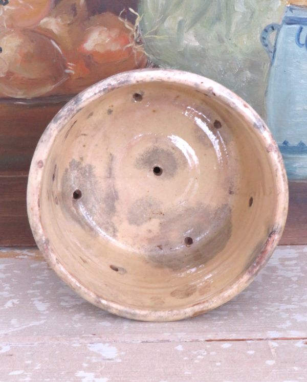 Antieke Franse Provencaalse kaasvorm/ uitlekvorm voor het maken van kaas.