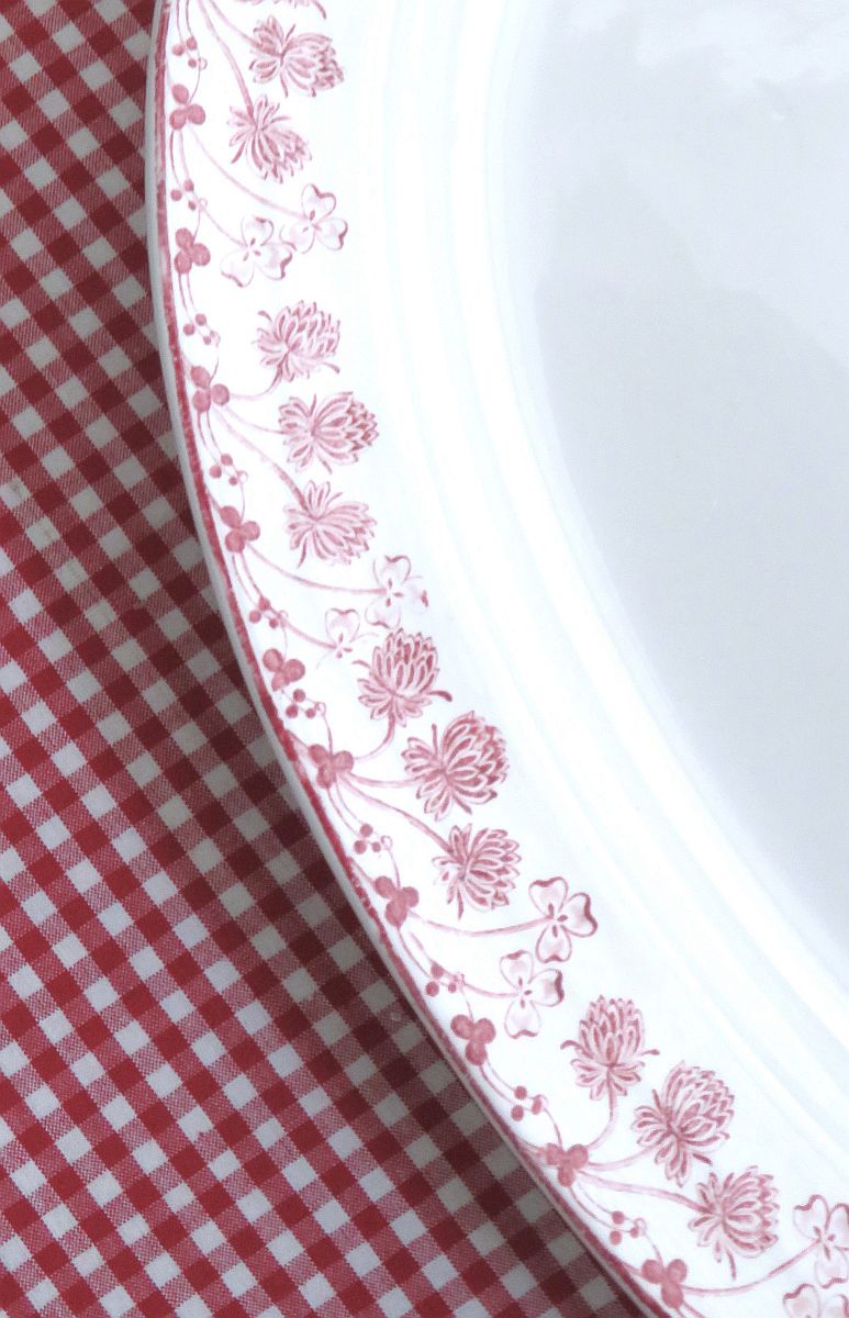 De schaal heeft een mooie rode klaverrand en is in goede/ schone conditie, klein beetje craquelé, zie foto’s.