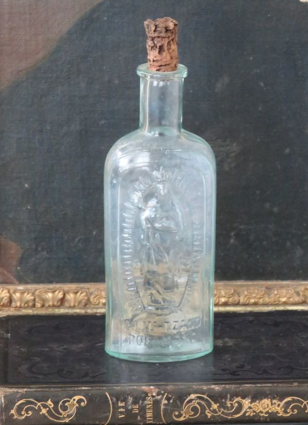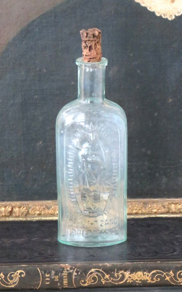 Antieke wijwater fles OLV ’t in Zand Roermond.