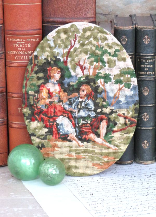 Oud ovaal borduurwerk ( petite point).