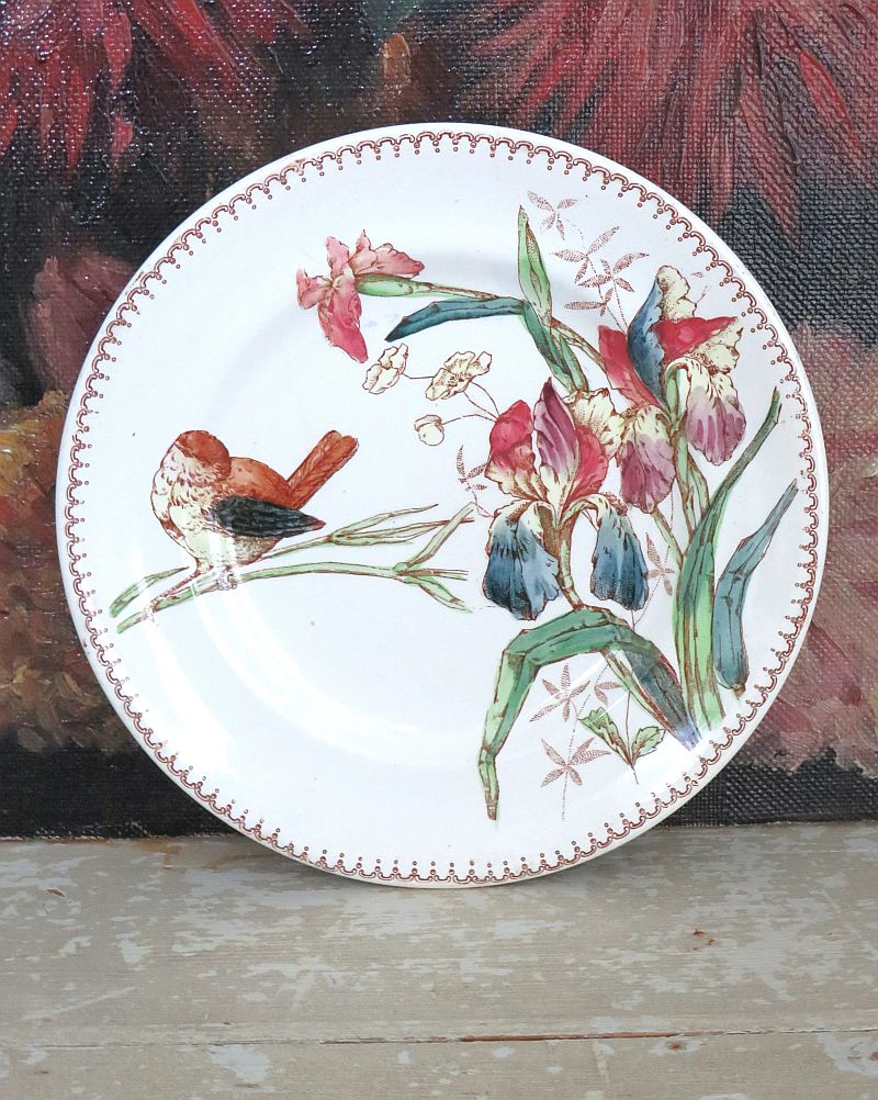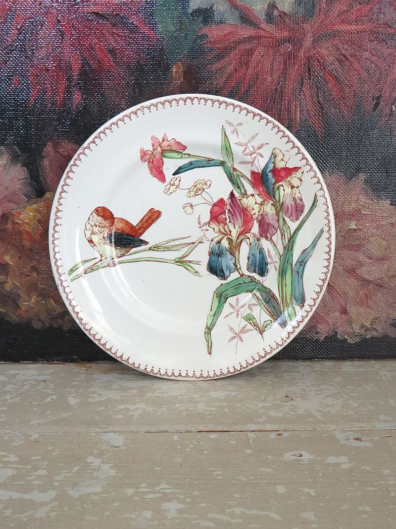 Frans plat bord Longwy “Oiseaux”. Diameter 23,5cm. Prachtig antiek bord en in uitstekende staat.
