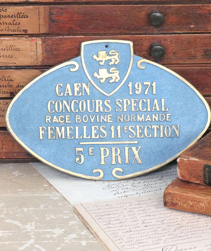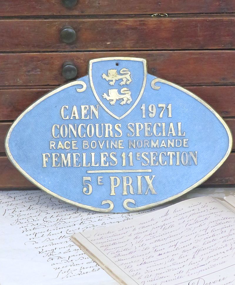 Frans metalen prijzenbordje “Caen 1971”.
