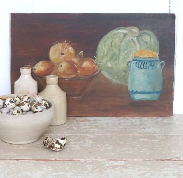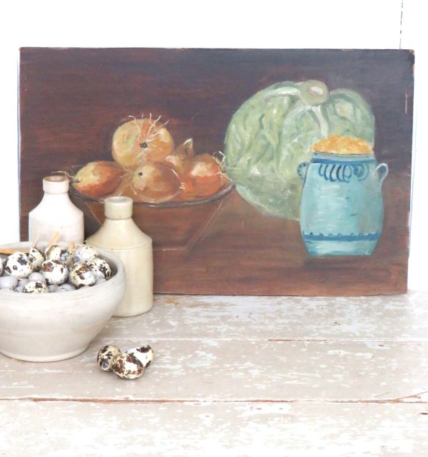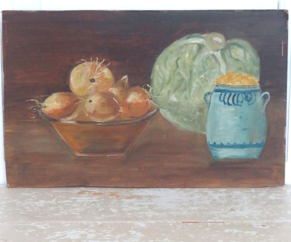 Oud Frans stilleven “Uien, sla en grespot”.