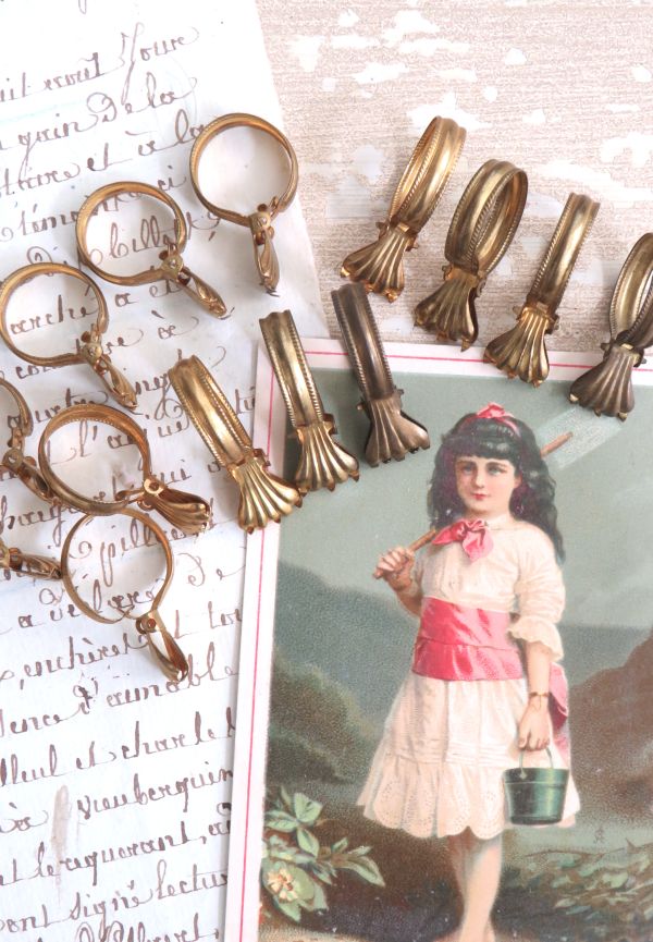 Gordijnklemmetje met parelrandje, geschikt voor een stang of roede met een diameter van circa 1,5cm.