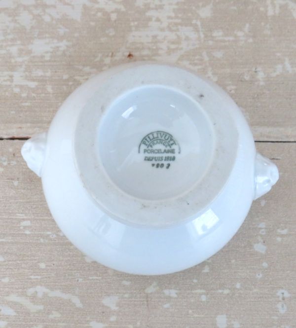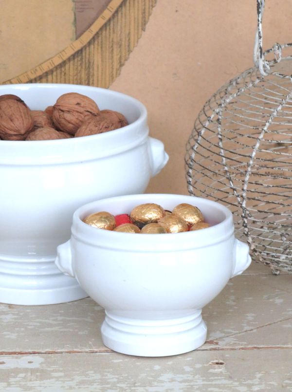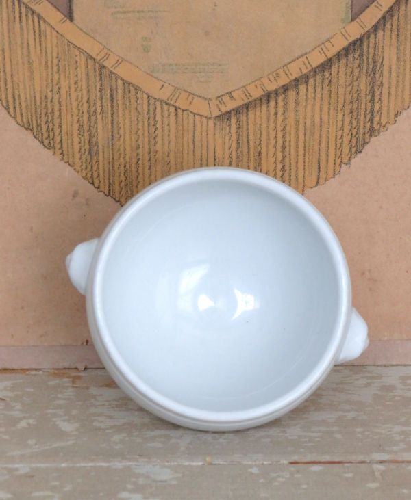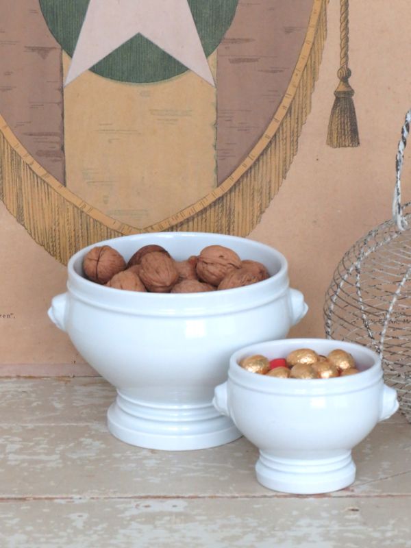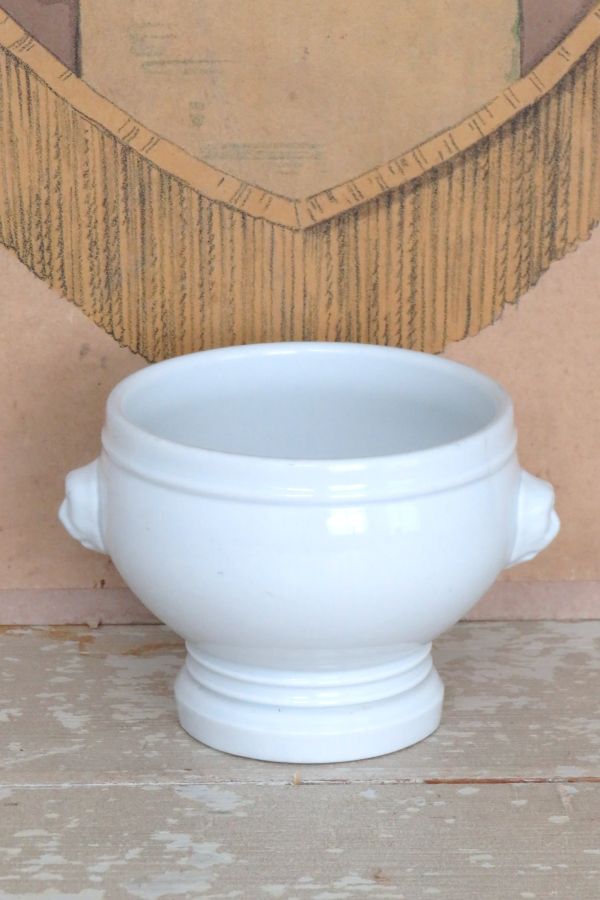 Kleine Franse porseleinen terrine Pillivuyt met 2 leeuwenkopjes.