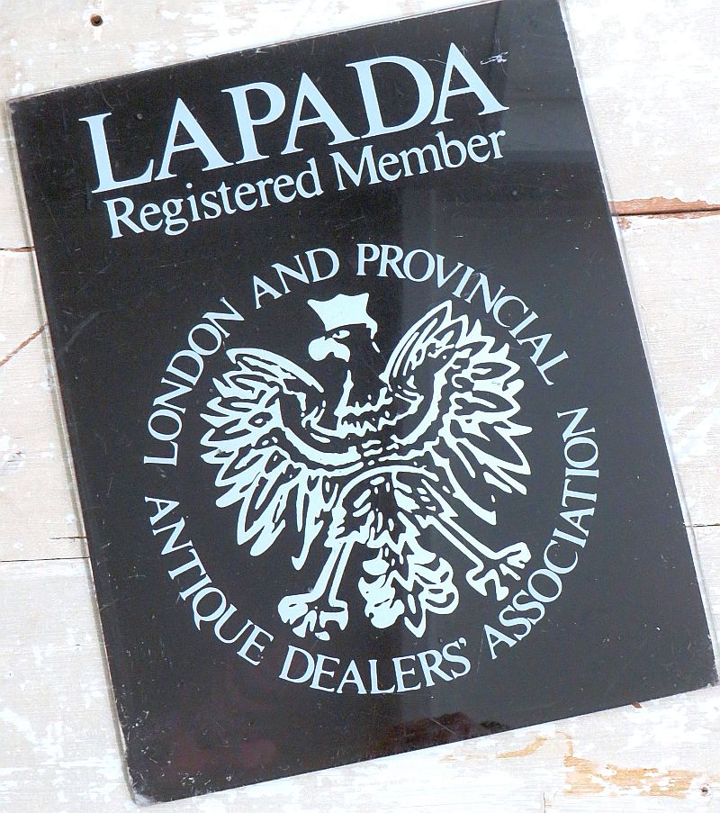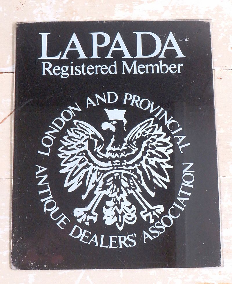 Oud vintage lidmaatschapbord LAPADA – Registered Member (London and provincial Antique Dealers’ Association ).