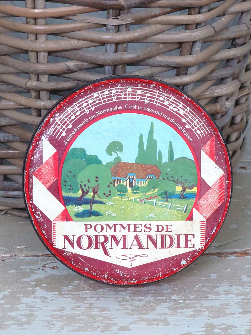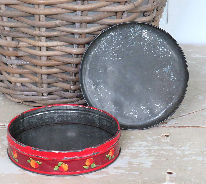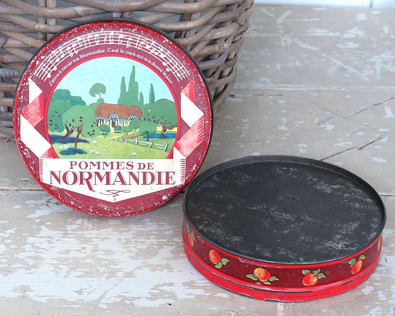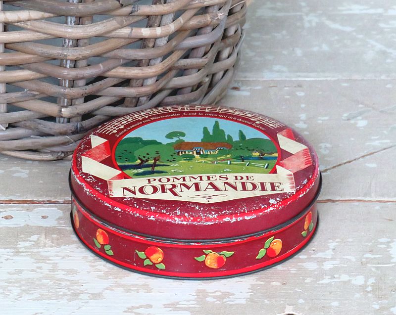 Het blik is mooi gedecoreerd (o.a. appeltjes aan de zijkant), de binnenkant is mooi vertind.