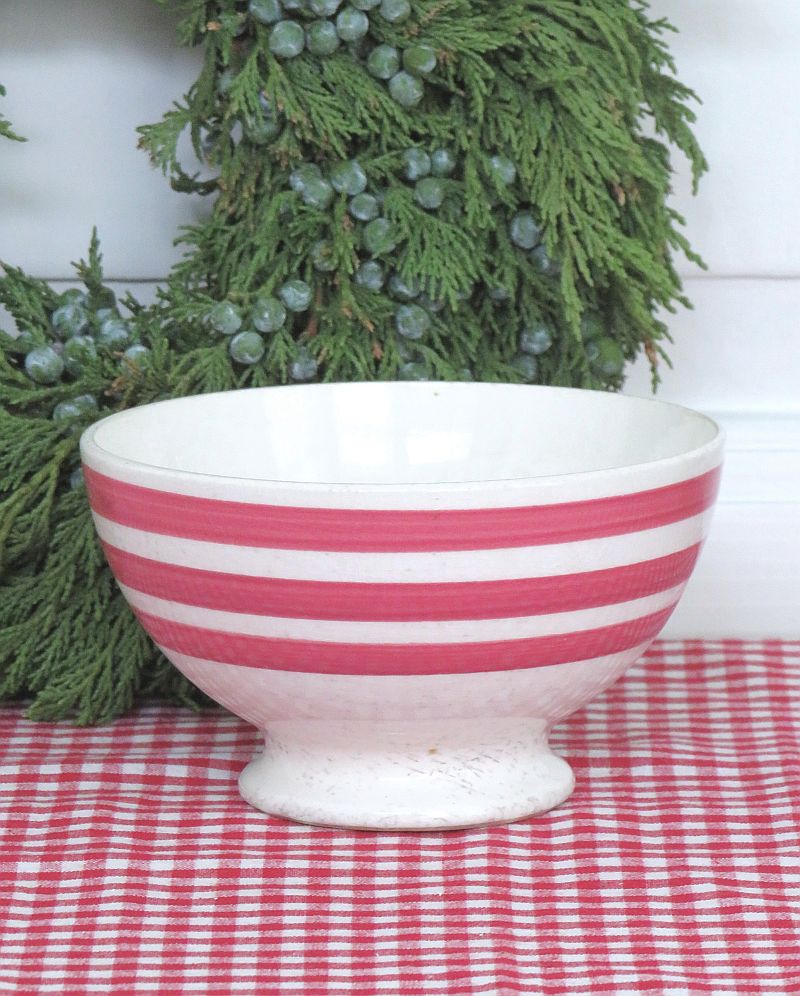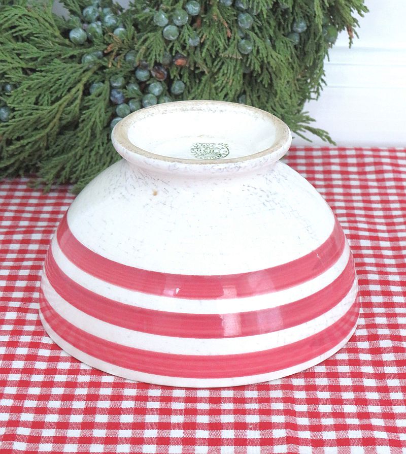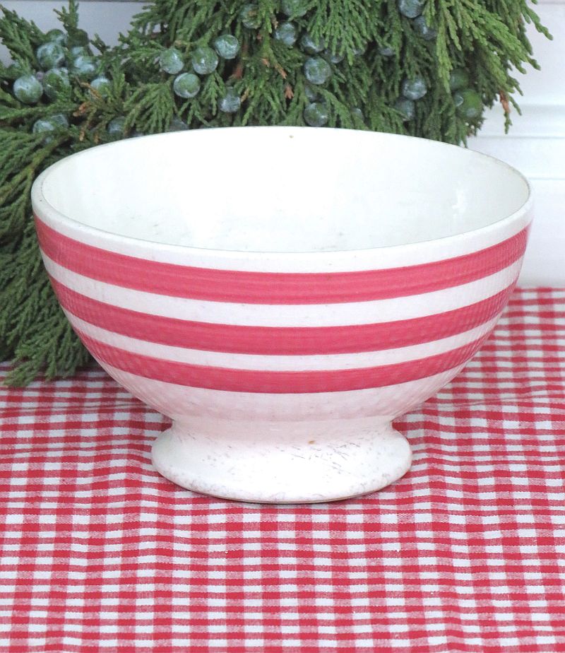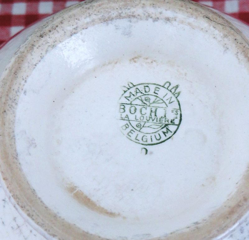 Oude grote spoelkom van Boch met 3 rode strepen.