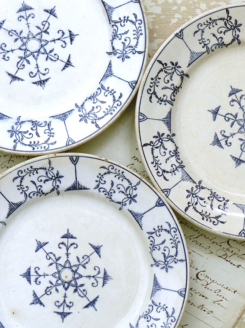 Set van 3 oude Franse platte borden Hamage et Moulin des Loups “Sakse”.