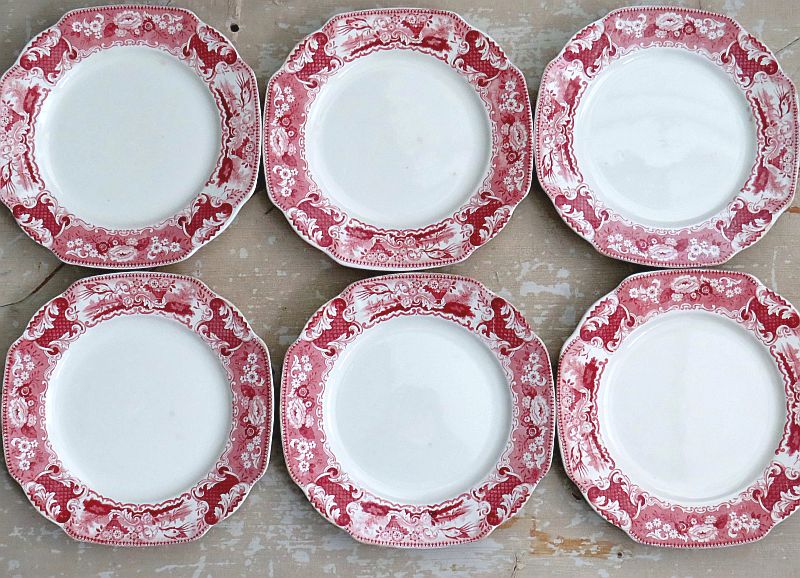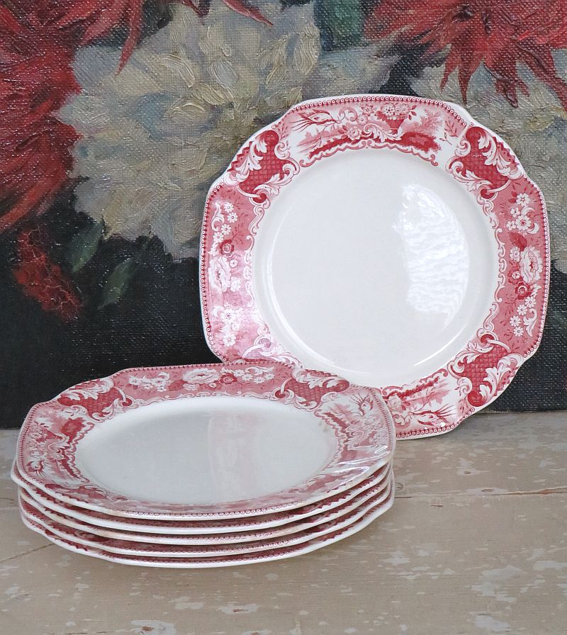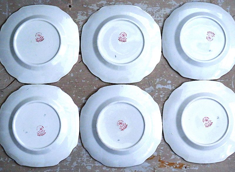Set(6)Dessertborden Société Ceramique “Victoria” Rood.