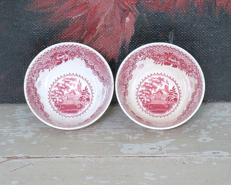 Set van 2 antieke spoelkommetjes BF “Orphans” rood.