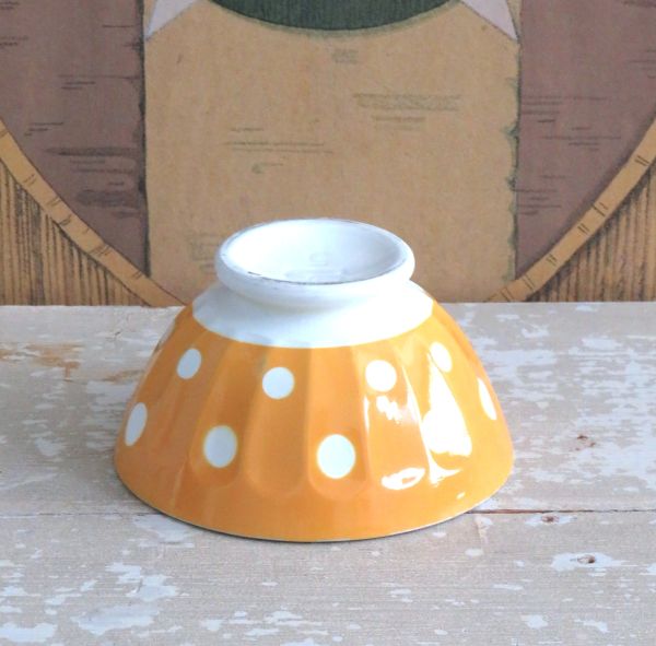 Vintage Franse spoelkom Sarreguemines geel/ polkadots.