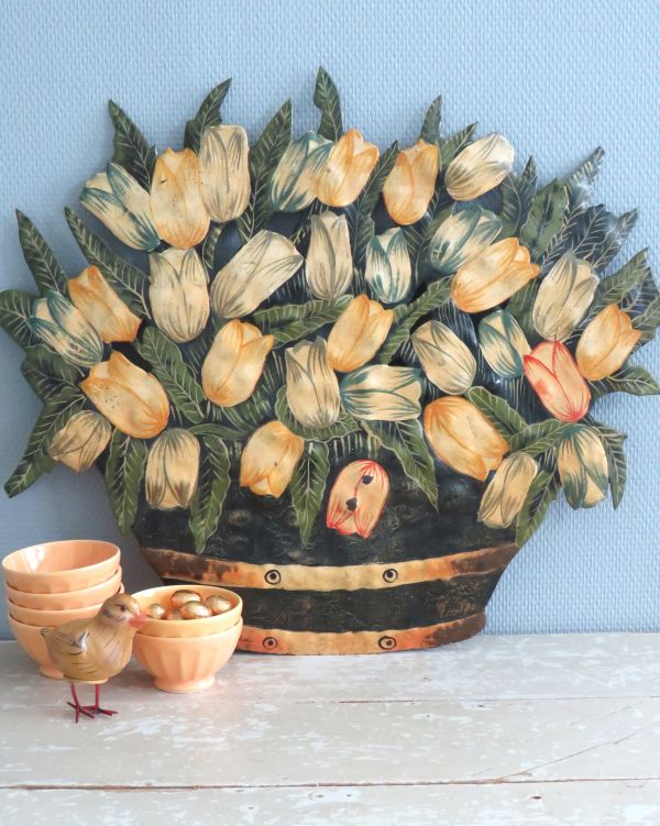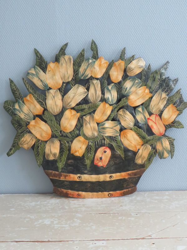 Vintage metalen wanddecoratie “Tulpen”.