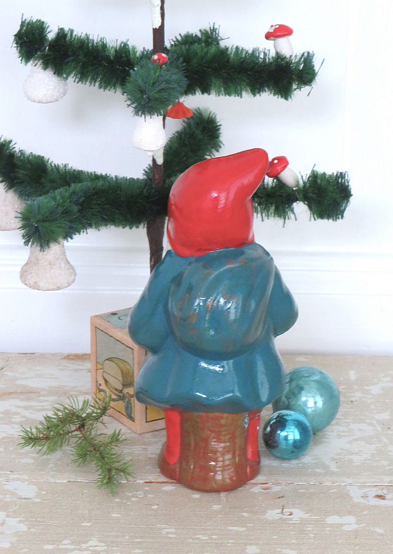 Vintage Zweedse kerstkabouter/ tomte met lantaarn.